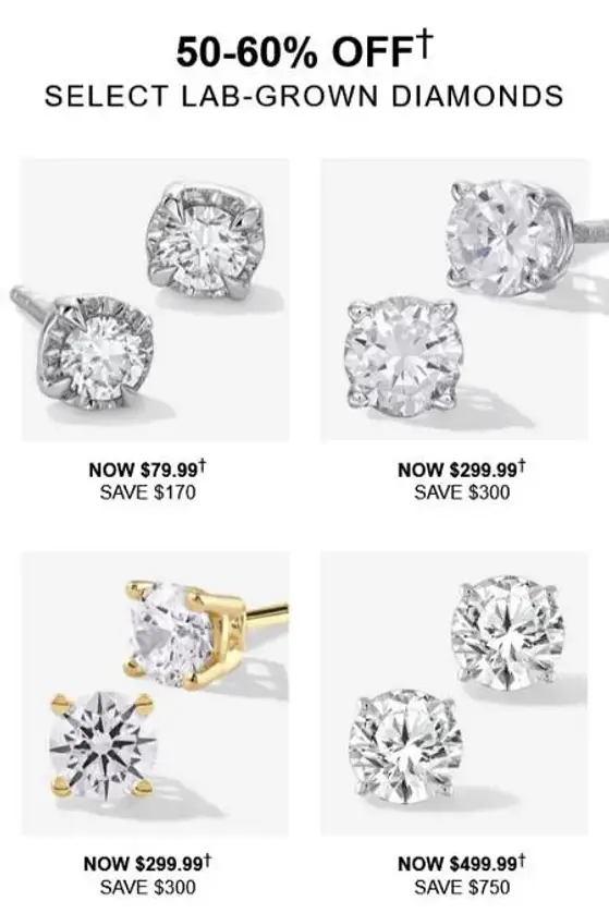 Super savings! Shop in store and get 50-60% off select lab-grown diamonds.